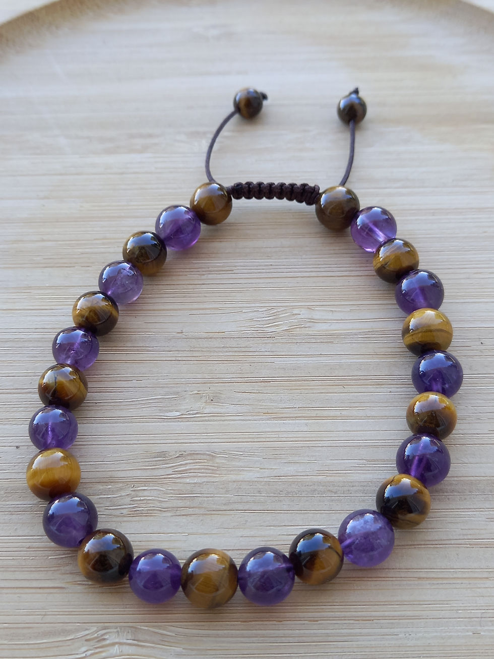 Bracelet Anti-stress Shamballa - Améthyste et Œil de tigre